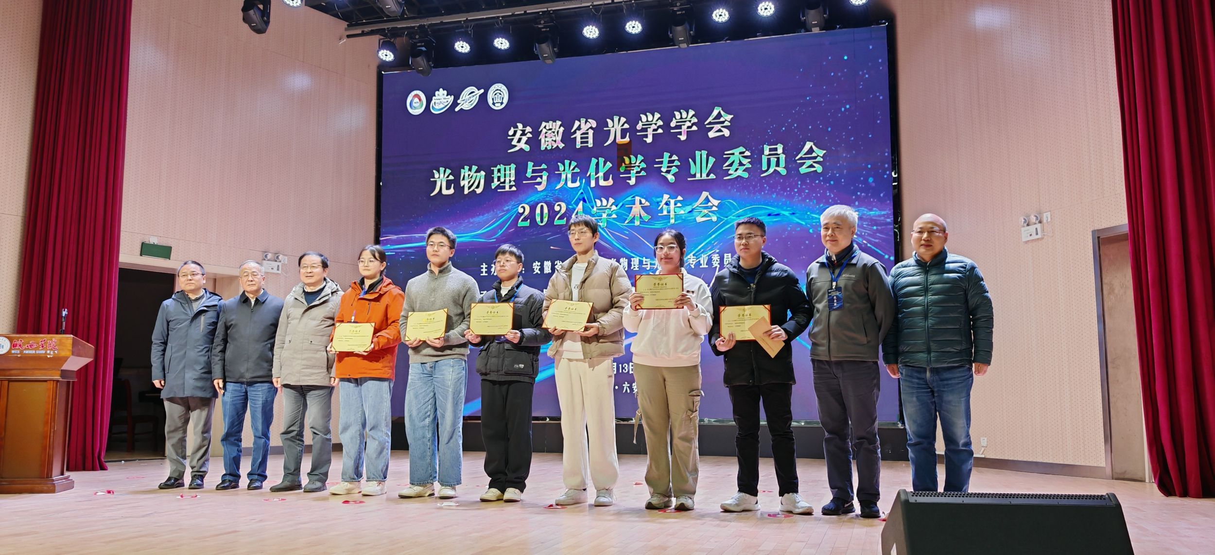 2024年12月13日至15日,安徽省光学会光物理与光化学专业委员会2024年学术年会在安徽省六安市皖西公司举行。本次大会由安徽省光学学会主办,中国科公司安徽光学精密机械研究所、皖西公司承办。来自中国科学技术大学、中国科公司合肥物质科学研究院、合肥工业大学、安徽大学、m88官网、安庆师范大学、南京信息工程大学等省内外10多家单位的160余名代表参加了本次年会,并贡献了48场精彩的学术报告。课题组多位老师和同学参加会议并作学术交流。其中,课题组青年教师赵春一博士以《二维钙钛矿光物理性质及载流子动力学研究》为题作大会主题报告,徐新杰同学作研究生主题报告,刘榕同学和梁超龙同学参加了墙报交流活动并在大会上作研究生快闪报告。最终经过专家评选,徐新杰同学荣获优秀论文表达奖,梁超龙同学荣获优秀海报奖。