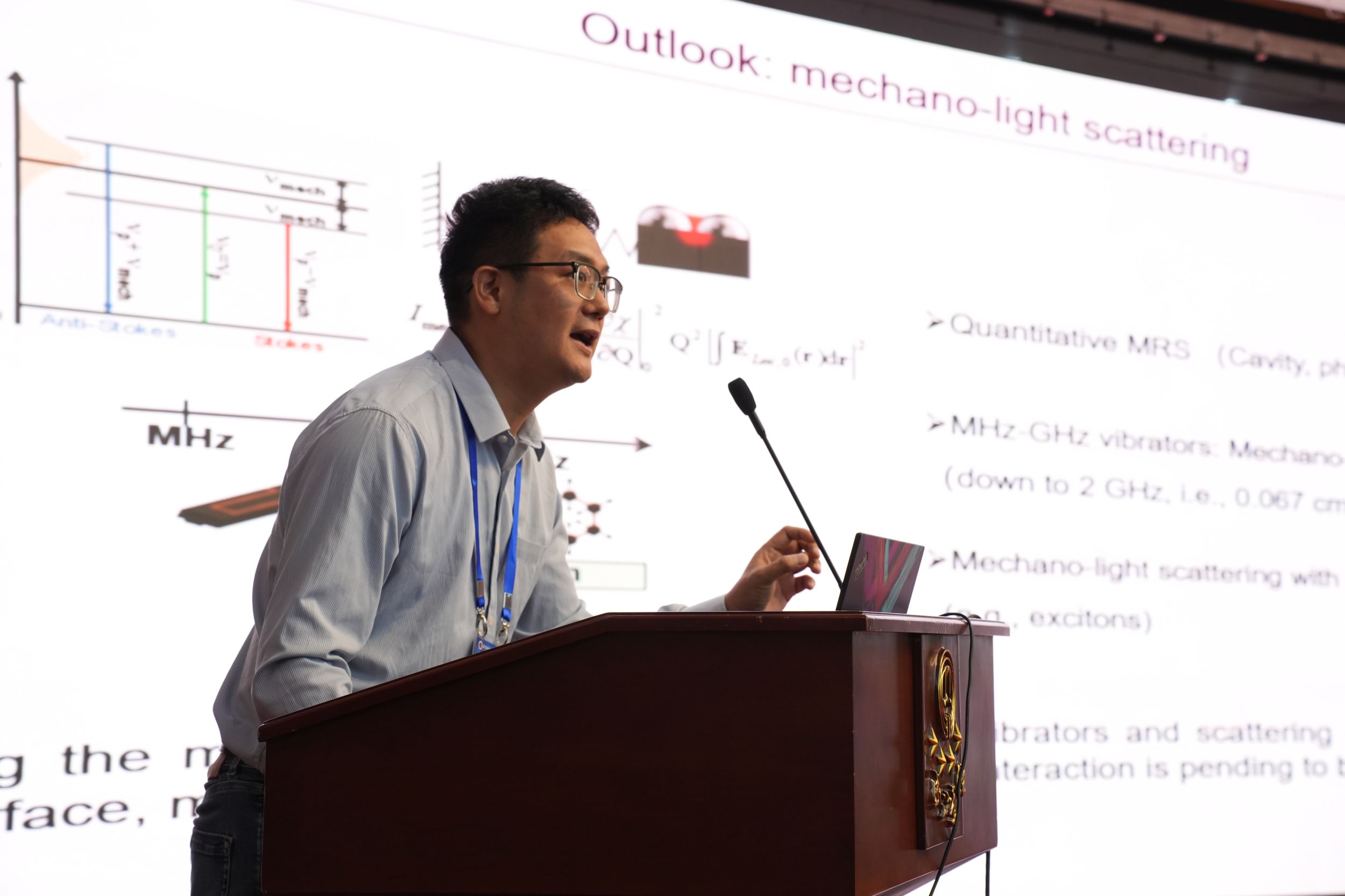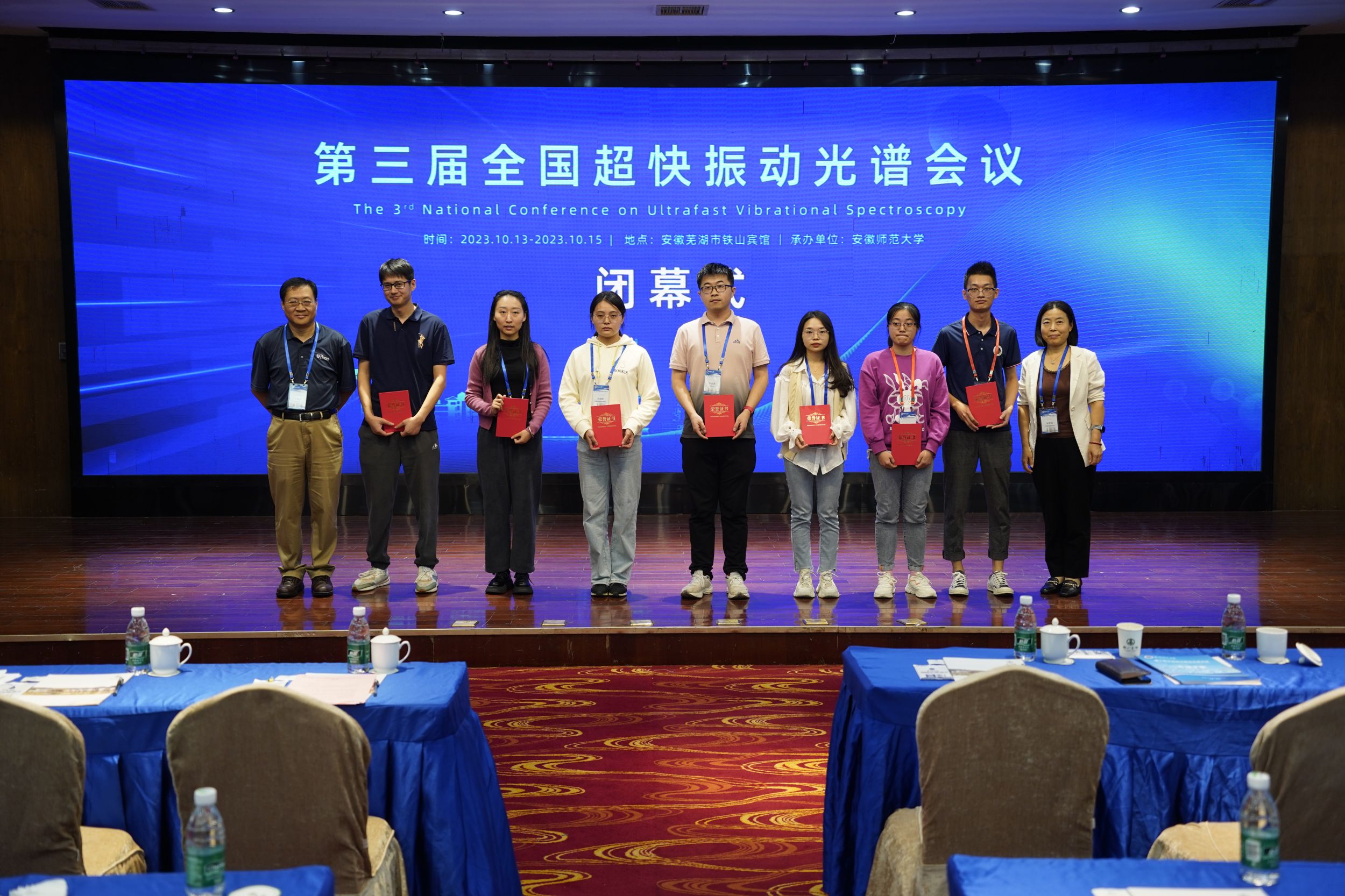 开幕式后,北京大学盖锋教授、西湖大学王鸿飞教授、山东大学步宇翔教授分别以“蛋白动力学位点特异性评估的线性与非线性红外光谱研究”“高重频高分辨非线性振动光谱”“二氧化碳液相还原与预溶解电子超快相互作用动力学的从头算分子动力学研究”为题作了大会主旨报告。随后,43位专家围绕着飞秒时间分辨与多维红外光谱、和频振动光谱、非线性拉曼光谱、时域太赫兹光谱、红外与太赫兹光源、超快振动光谱理论等专题作了精彩的学术报告。与会的其它专家、博士后、研究生以墙报形式分享了他们的最新研究进展。经专家投票,会议评选出了14个最佳墙报展示奖。