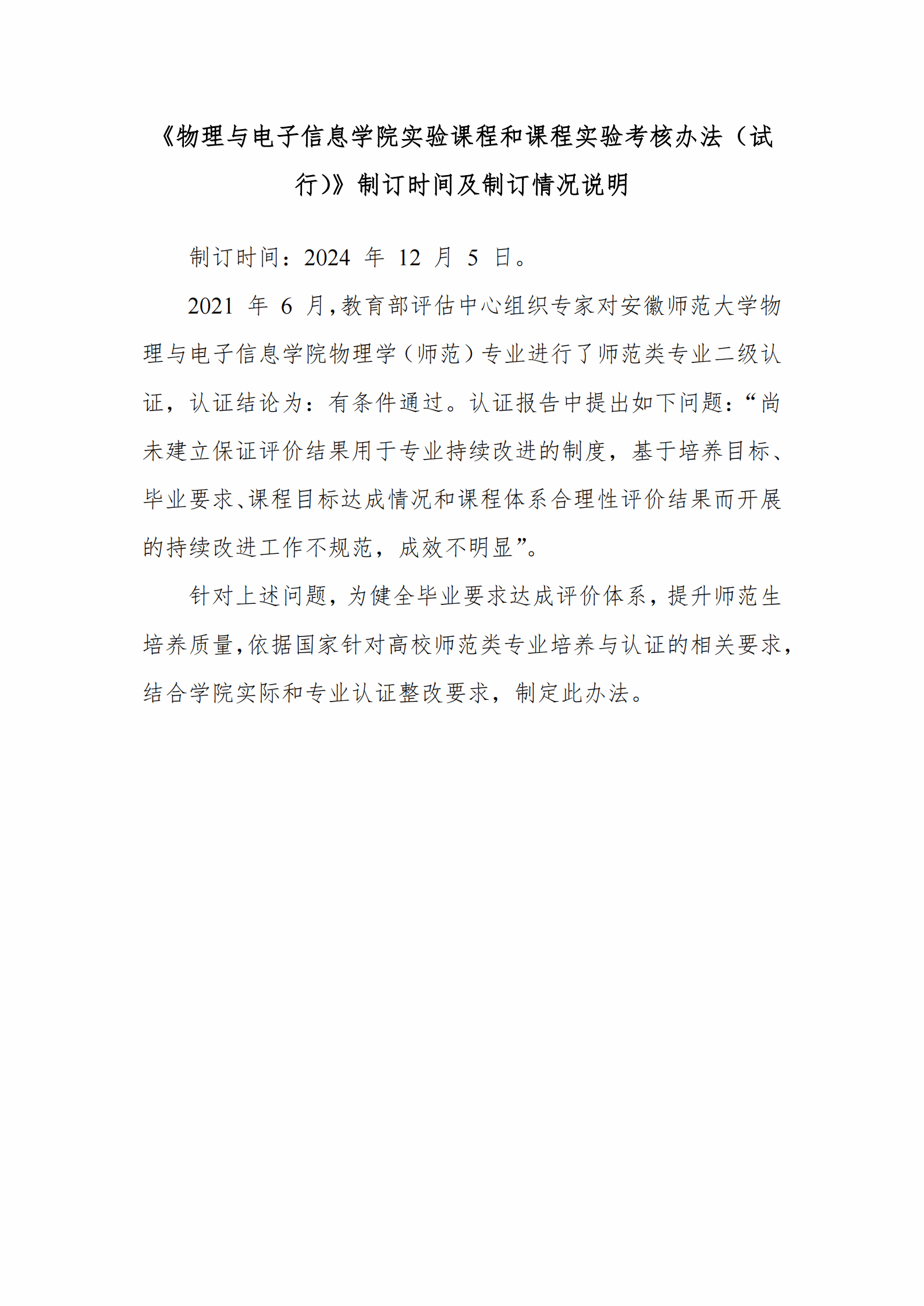 《m88实验课程和课程实验考核办法(试行)》及制订情况说明